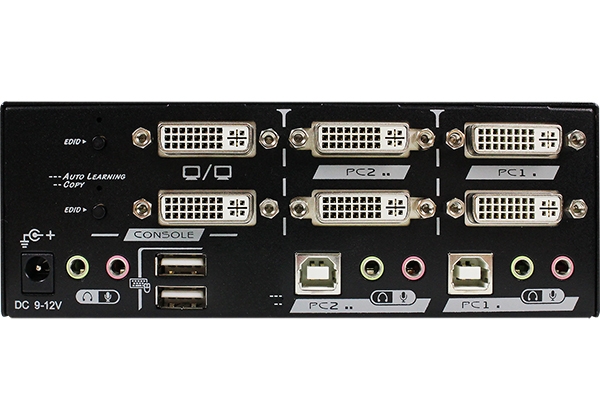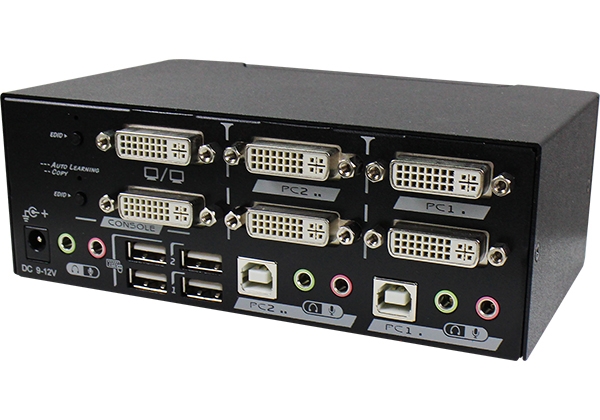 2 Ports Dual Video DVI KVM Switch with USB 2.0, Audio, Hotkey Control
