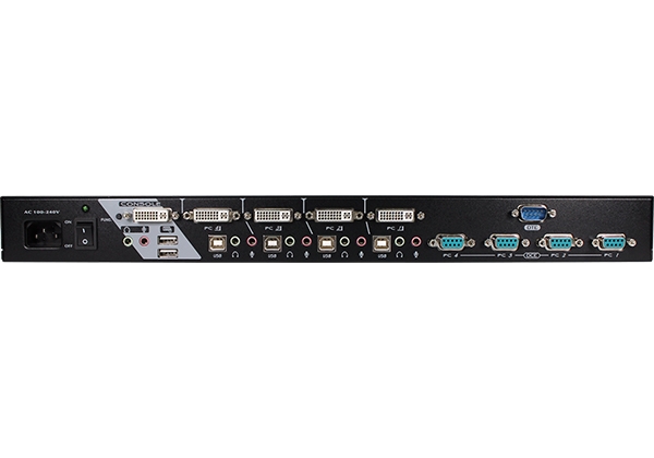 RS-232 serial switching function on 4 Ports Dual-Link DVI KVM Switch with Serial is especially designed for industrial control and communication purposes to enhance the functionality of KVM and serial devices management and eliminate the need to connect each device to an ASCII terminal or PC.