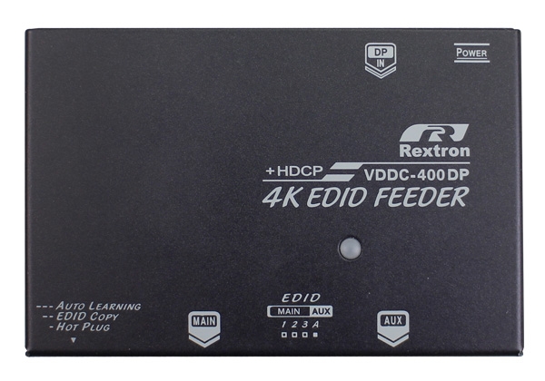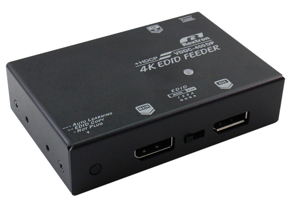 EDID Auto Learning and EDID Copy functions allow the 4K DisplayPort Ghost either to read the necessary EDID information from the splitter unit itself or to copy EDID from the EDID compliant monitors (DP1 or DP2), which ensures the accurate output display. 4K DisplayPort Ghost, VDDC-400DP, aggregates EDID Feeds from either DP 1 (Main) or DP 2 (Aux) compliant monitor and supports both Permanent (EDID Copy) and Temporary (EDID Auto Learning) EDID configurations.