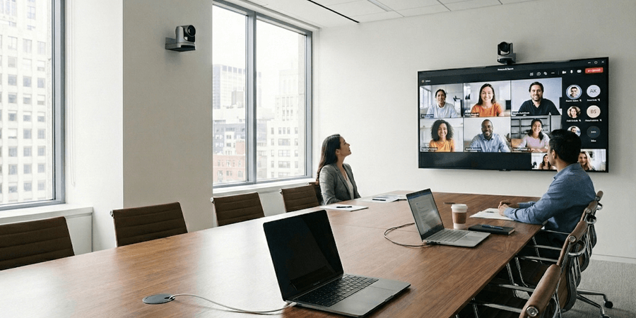 現代會議室多配備專用會議室電腦,但使用者往往更習慣使用自己的筆電進行簡報或 Zoom / Teams 會議。
