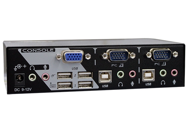 KAAG-112, 2路VGA音訊電腦切換器, 符合USB規範是一套VGA KVM切換器和USB HID/ USB 2.0周邊設備分享的2埠多電腦影音切換系統. 通過一個USB鍵盤, 一個USB滑鼠和1台螢幕輕鬆操控2台電腦, 支援解析度高達 1920x1200.