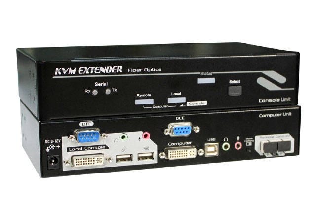 DVI KVM光纖延長器, FXDAS-2022, 由一個電腦端單元 (FXDAS-021P) 加上一個控制端單元 (FXDAS-012S) 所組成. 透過 SC M-M多模光纖線路延長 DVI/ USB/ Audio/ RS-232 等訊號, 訊號傳送彼此間獨立互不干擾, 最遠可達2KM, DVI解析度最高可達 FHD 1920x1080@60Hz ( 4:4:4 ).